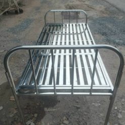 – Giường đơn có hộp, vạt giường Inox, có cọc treo màn.