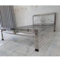 – Giường đơn có hộp, vạt giường Inox, có cọc treo màn.